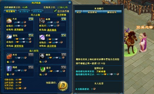 6、玩家领取任务后会驾驭驮货马进行跑商,下马或者下线,驮货马都将消失,需要等15秒后才能在NPC贸易总管处召回;