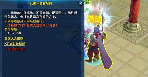 乱武大会是《龙武》里最混乱的PVP模式,比赛没有限制规则,唯一的规则就是打到每一个你所看见的人。