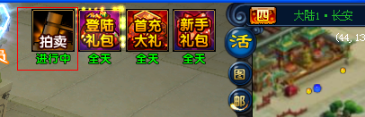 2. 每周二14:00到下周二12:00,10级以上的玩家可到长安NPC“商会主管”(44,,13)处参加店铺竞拍活动,竞争下周的店铺经营权。