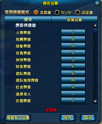 点击主界面右下的“系统设置”按钮,再点击“操控设置”按钮,可打开查看和设置快捷键。