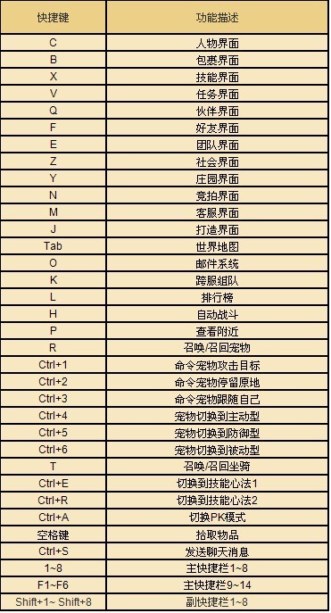鼠标左键:移动、确定操作、选定目标、使用左键技能等;