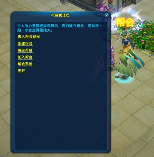 1、30级及以上且没有帮会的玩家,与NPC“帮会管理员”对话或打开社会关系界面选择帮会按钮选择建立帮会;