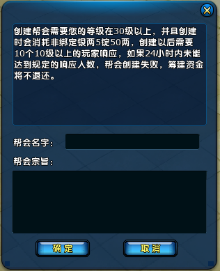 3、申请创建帮会需要消耗5锭50两非绑定银两。