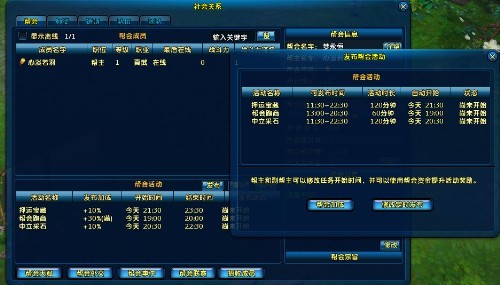 帮主和副帮主有权限发布帮会活动,发布以后会持续1~2小时的帮会发布状态。帮会成员在任务发布期间完成任务会获得额外百分比加成的奖励。