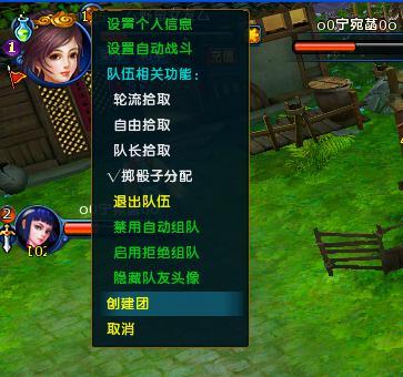 团队是进行帮派战等大规模团体战时必须的组建单位,方便管理。玩家在组团前必须先组队,组队后,队长右键点击自己的头像,下拉框中会出现创建团这一新的选项。