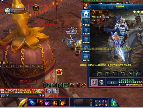 (1)85级及以上角色,打开【角色】界面的【英雄】按钮,可以装备【英雄】来提升人物属性,装备英 雄可变身获得英雄技能;