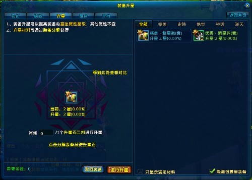 1、把要升星的装备放入装备槽当中,放入相应的升星石就可以升星了。
