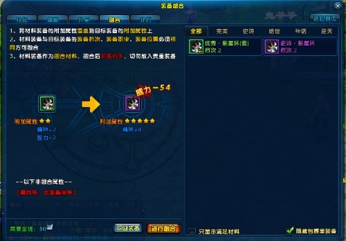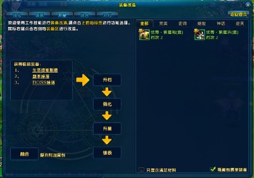 注:主装备并无装备类型、档次等限制,但是材料装备必须使用与主装备同档次、同职业、同部位的装备才可。