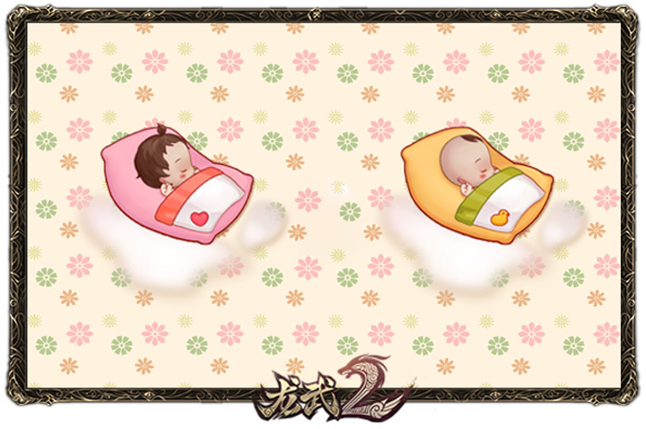 在生儿育女系统里,宝宝诞生后一共会经历四个阶段:襁褓期、幼儿期、儿童期、成年期。襁褓时期的宝宝只能依偎在家长身边,受父母精心的照料,父母们可为宝宝播放音乐,在音乐的熏陶下逐渐成长;待他们蹒跚学步时,此时便可为宝宝换上精致服饰,带他们出门游览山水,见识《龙武2》大千世界。