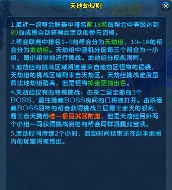 天地劫是一个帮会规模活动,集合帮会PVE和帮会PVP对抗为一体的活动