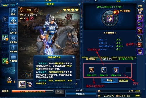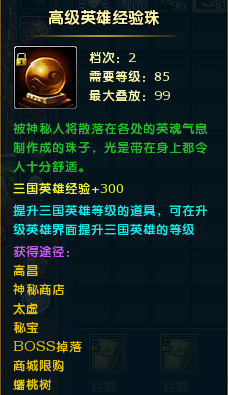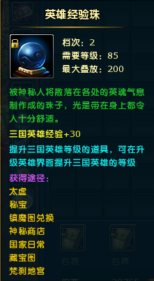 (5)英雄升级 可以使用升级材料(英雄,英雄经验珠,高级英雄经验珠)提升英雄等级,英雄的基础属性随着等级提升而