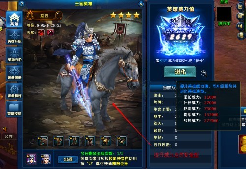 (4)英雄进化 提升英雄威力值可以提升军衔并进化英雄造型。