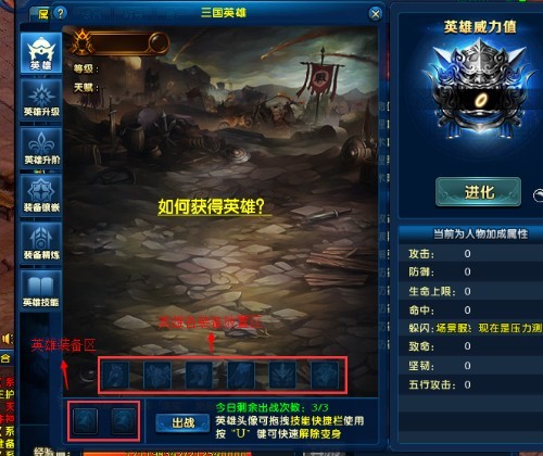 (3)每一个角色可以装备2个英雄,每天一共可以出战3次,每次10分钟,10分钟内,可随意切换英雄或重新出战,10分钟后出战需
