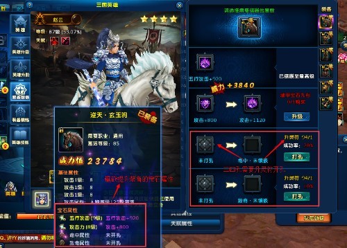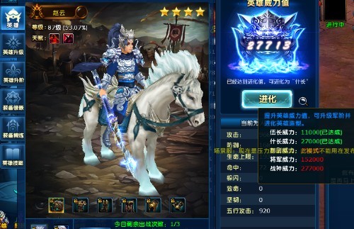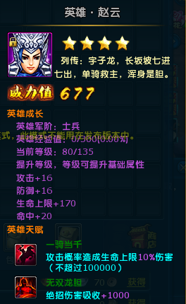 加 命中500),四星英雄·赵云(天赋:一骑当千 攻击概率造成总生命值上限10%的伤害(不超过10W),无双龙胆 绝招伤害
