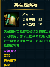 (1)85级及以上角色,打开【角色】界面的【英雄】按钮,可以装备【英雄】来提升人物属性,装备英 雄可变身获得英雄技能;