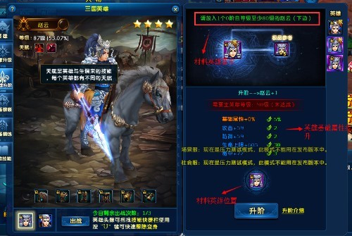 (6)英雄升阶 消耗对应的材料英雄大幅度提升英雄的基础属性(升阶最高可以+5)